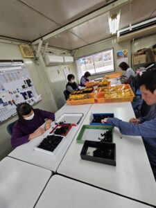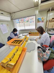 お菓子の箱折り作業をしました。