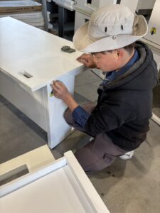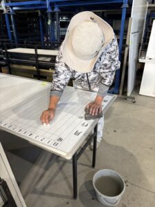 突起品にゴムをつける作業