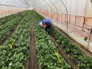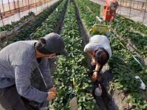 いちごハウスの生育管理をしました。