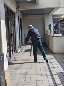 マンション内の廊下・階段の掃き掃除