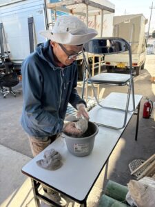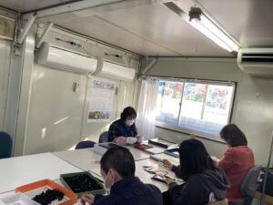 突起品にゴムをつける作業・お菓子の箱折りをしました。